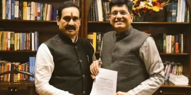 मध्यप्रदेश के पूर्व मंत्री एवं दतिया विधायक डॉ नरोत्तम मिश्रा ने दिल्ली प्रवास के दौरान केंद्रीय कैबिनेट रेल मंत्री पीयूष गोयल से मुलाकात की। इस दौरान डॉ श्री मिश्र ने विधानसभा क्षेत्र दतिया बसई के आगे वर्धमा रोड के पास रेलवे क्रॉसिंग करवाने और डबरा जिला ग्वालियर रेलवे स्टेशन के पास अंडरब्रिज की स्वीकृति का मांग पत्र रेल मंत्री पीयूष गोयल को सौंपा।