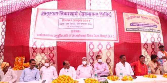 गांधी जयंती 2 अक्टूबर के उपलक्ष्य में शिवपुरी के ग्राम छिरेटा में अस्पृश्यता निवारण अथवा सद्भावना शिविर का आयोजन किया गया। शिविर में उपस्थित ग्रामीणजनों को विभिन्न विभागों की योजनाओं की जानकारी दी गई। शिविर में अतिथि के रूप में जिला अध्यक्ष श्री राजू बाथम मौजूद रहे।