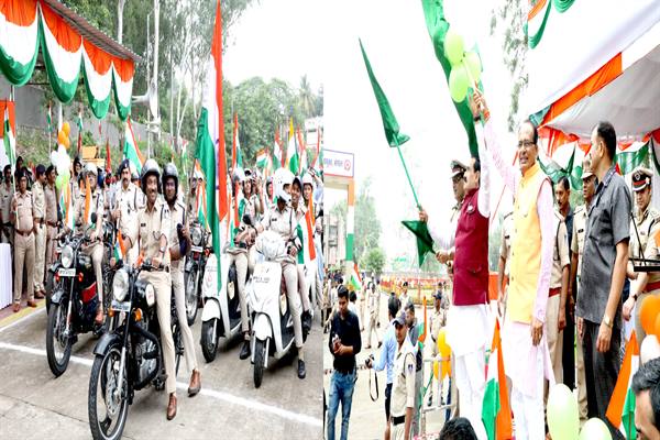 मुख्यमंत्री श्री चौहान ने पुलिस जवानों की बाईक और पैदल तिरंगा रैली को हरी झंडी दिखा कर रवाना किया