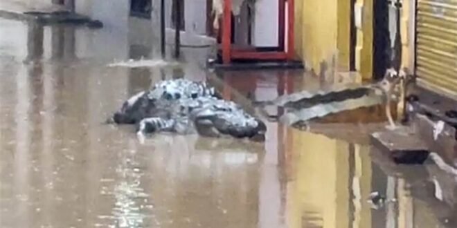 शिवपुरी में बारिश में बस्तियों में भरा पानी, घुस आया मगरमच्छ, फैली दहशत