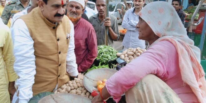 मंत्री डॉ. मिश्रा ने टाऊन हॉल में महिला सब्जी विक्रेताओं से हाल-चाल जाना और सब्जी व्यवसाय से होने वाली आय के संबंध में भी चर्चा कर जानकारी ली।