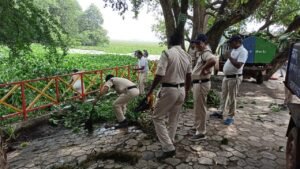 इस दौरान सभी ने सफाई की, कचरा उठाकर डस्टबिन में डाला और सभी को स्वच्छता बनाए रखने के लिए प्रेरित किया। इस मौके पर होमगार्ड और एसडीआरएफ टीम सहित पत्रकार आरती जैन एवं स्थानीय नागरिक गण भी उपस्थित थे।