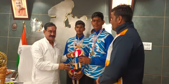 भोपाल – गृहमंत्री डॉ.नरोत्तम मिश्रा ने दतिया से भोपाल आकर पदक जीतने पर बधाई और शुभकामनाएं दी हैं। उन्होंने कहा कि प्रतिभा जब निखर कर सामने आती है तो वह दूसरों के लिए प्रेरणा स्रोत बन जाती है दतिया के बच्चों ने जो कमाल किया है उससे निश्चित ही प्रतिभाशाली खिलाड़ियों का मार्ग भी प्रशस्त होगा। आज भोपाल के बड़े तालाब में खेलों एमपी यूथ गेम्स 2023 में वाटर स्पोर्ट्स रोइंग प्रतियोगिता में दतिया के श्री देवराज रावत और श्री राज कमरिया ने सिल्वर मेडल हासिल किया है। गृह मंत्री डॉ. मिश्रा ने भोपाल निवास पर मेडल हासिल करने वाले खिलाड़ियों और कोच जितेन्द्र शर्मा को सम्मनित कर उज्जवल भविष्य को लेकर शुभकामनाएं दी।