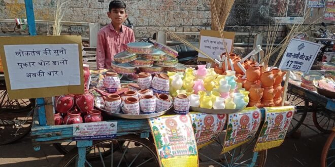 ऐसा ही एक प्रयास आज जनपद शिवपुरी में देखने को मिला जब ग्रामीण क्षेत्र के सभी ठेलों पर करवाचौथ के लिए आवश्यक करवो पर मतदाता जागरूकता सम्बन्धी पम्पलेट्स को करवों के साथ रखना या चिपकाना अनिवार्य कर दिया, ठेले वालों ने भी प्रशासन के साथ कंधे से कन्धा मिलाकर करवाचौथ के हर करवा के साथ मतदाता जागरूकता पम्पलेट्स को अनिवार्य कर दिया। ये मिटटी के करवा इस करवाचौथ पर घर घर जायेंगे, हर महिला तक इनके माध्यम से सन्देश जायेगा कि करवाचौथ के त्यौहार के साथ साथ लोकतंत्र का त्यौहार भी जरुरी है। इसमें सभी महिला मतदाता बढ़चढ़कर हिस्सा लें एवं अपना अमूल्य वोट डालने जरूर जाएँ।
