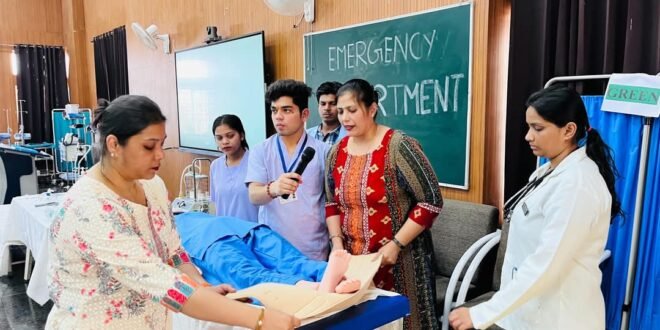 इसी क्रम में सयुंक्त रूप से डॉ. शिल्पा अग्रवाल डॉक्टर नीति अग्रवाल ने बेसिक लाइफ सपोर्ट (बीएलएस) एवं एडवांस कार्डिक लाइफ सपोर्ट (एसीएलएस),मास कैजुअल्टी ईवेंट ट्रायेज प्रोटोकॉल का प्रशिक्षण दिया गया। इसी के साथ प्रशिक्षण/मॉक ड्रिल के माध्यम से बताया कि बेसिक लाइफ सपोर्ट (बीएलएस) कार्डियोपल्मोनरी रिससिटेशन (सीपीआर) के उपयोग के माध्यम से रोगी के रक्त संचार और श्वसन को सहारा देने के लिए किया जाता है, जब तक कि उन्नत जीवन समर्थन नहीं आ जाता। जिन पीड़ितों को समय पर और सही तरीके से बीएलएस दिया गया है, उन्हें बेहतर ऑक्सीजन मिलेगी और उन्हें पुनर्जीवित करने के लिए उन्नत तकनीकों पर प्रतिक्रिया करने की अधिक संभावना है, जिससे उनके बचने की संभावना बढ़ जाती है। साथ ही रीढ़ की हड्डी को भी सुरक्षित करने का प्रशिक्षण दिया।