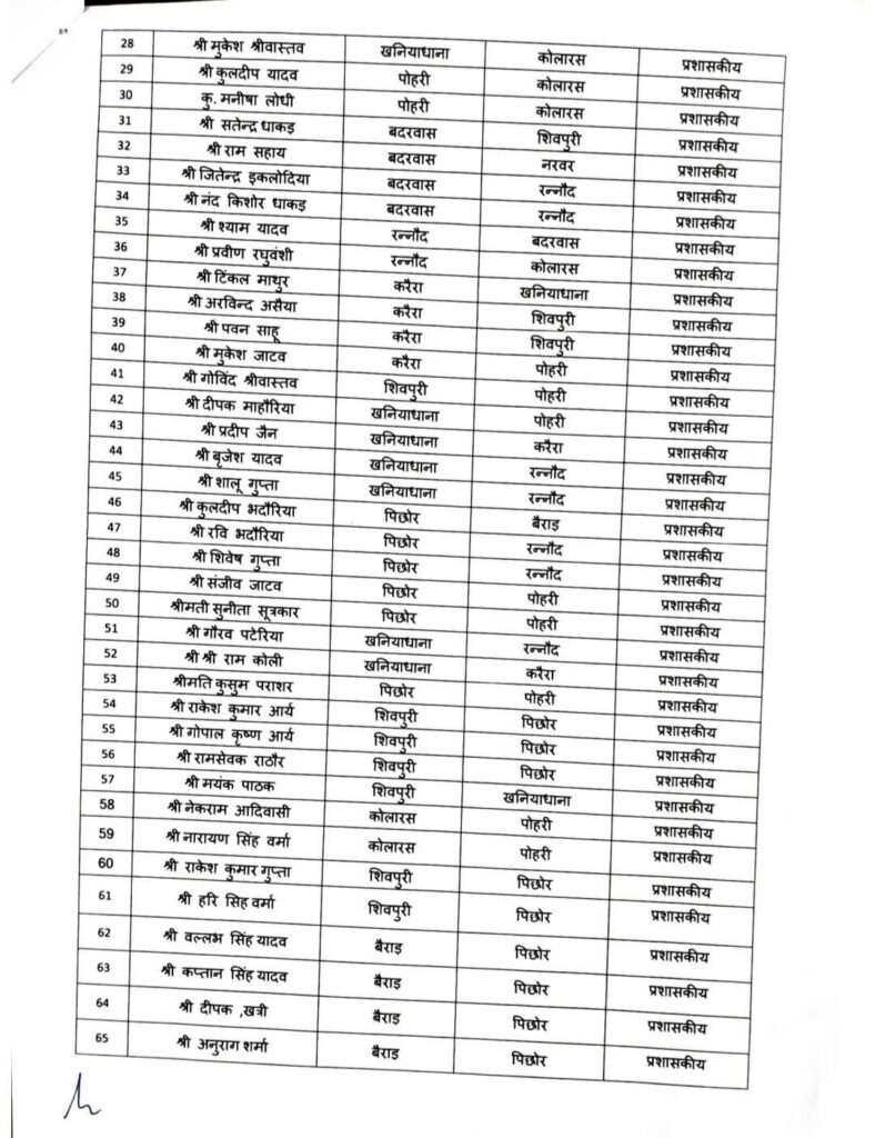स्थानांतरण सूची में शिवपुरी, करैरा, खनियाधाना, पिछोर, नरवर, कोलारस, पोहरी, बैराड़ और रन्नौद जैसे प्रमुख तहसीलों से कार्यरत पटवारियों के नाम शामिल हैं। कुछ पटवारियों को प्रशासनिक आधार पर एक तहसील से दूसरी तहसील में भेजा गया है, वहीं कुछ को नियमित प्रक्रिया के तहत स्थानांतरित किया गया है।