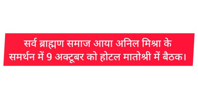 सर्व ब्राह्मण समाज आया अनिल मिश्रा के समर्थन में 9 अक्टूबर को होटल मातोश्री में बैठक।
