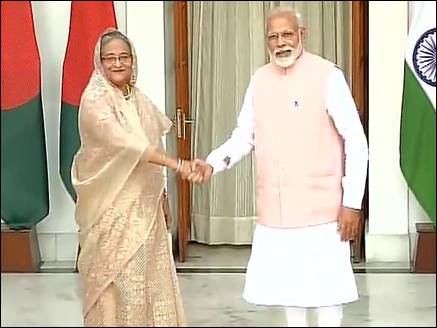 बांग्लादेश की प्रधानमंत्री शेख हसीना ने पीएम नरेंद्र मोदी से हैदराबाद हाउस में मुलाकात की। यहां भारत और बांग्लादेश के बीच प्रतिनिधिमंडल स्तर की वार्ता हुई। इस दौरान भारत-बांग्लादेश के बीच 22 विभिन्न प्रमुख क्षेत्रों में समझौतों पर हस्ताक्षर हुए।