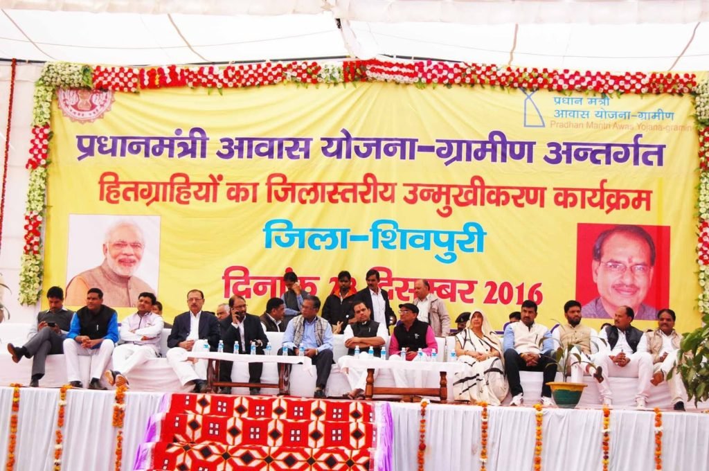 म.प्र.बाल अधिकार संरक्षण आयोग के अध्यक्ष डाॅ.राघवेन्द्र शर्मा के मुख्य आतिथ्य में जिला मुख्यालय शिवपुरी में स्थित पोलोग्राउण्ड में सबके लिए आवास 2022 के तहत आयोजित कार्यक्रम सम्पन्न हुआ। कार्यक्रम की अध्यक्षता जिला पंचायत अध्यक्ष श्रीमती कमला-बैजनाथ यादव ने की। कार्यक्रम में विशिष्ट अतिथि के रूप में विधायक पोहरी श्री प्रहलाद भारती, विधायक कोलारस श्री राम सिंह यादव, कलेक्टर श्री ओमप्रकाश श्रीवास्तव, पुलिस अधीक्षक श्री सुनील कुमार पाण्डे, नगर पालिका शिवपुरी के अध्यक्ष श्री मुन्नालाल कुशवाह, जनपद पंचायत शिवपुरी के अध्यक्ष श्री पारम सिंह रावत, जनपद अध्यक्ष बदरवास श्रीमती मिथलेश यादव, जनपद अध्यक्ष पिछोर श्री लोकपाल सिंह लोधी, जनपद अध्यक्ष नरवर श्री मुकेश खटीक, जनपद उपाध्यक्ष शिवपुरी श्री अशोक ठाकुर, नगर पालिका के उपाध्यक्ष श्री अनिल शर्मा अन्नी, जिला पंचायत सदस्य श्री बंटी रघुवंशी, जनपद पंचायत बदरवास उपाध्यक्ष श्री रामवीर सिंह यादव सहित जनप्रतिनिधि, अधिकारीगण एवं हितग्राही आदि उपस्थित थे। कार्यक्रम के दौरान जिला धार (मनावर) में मुख्यमंत्री श्री शिवराज सिंह चैहान के आवास वितरण कार्यक्रम का सीधा प्रसारण भी किया गया। इस मौके पर प्रदेश के पूर्व मुख्यमंत्री श्री सुदंरलाल पटवा के निधन पर दो मिनट का मौन रखकर श्रृद्धांजलि दी गई।