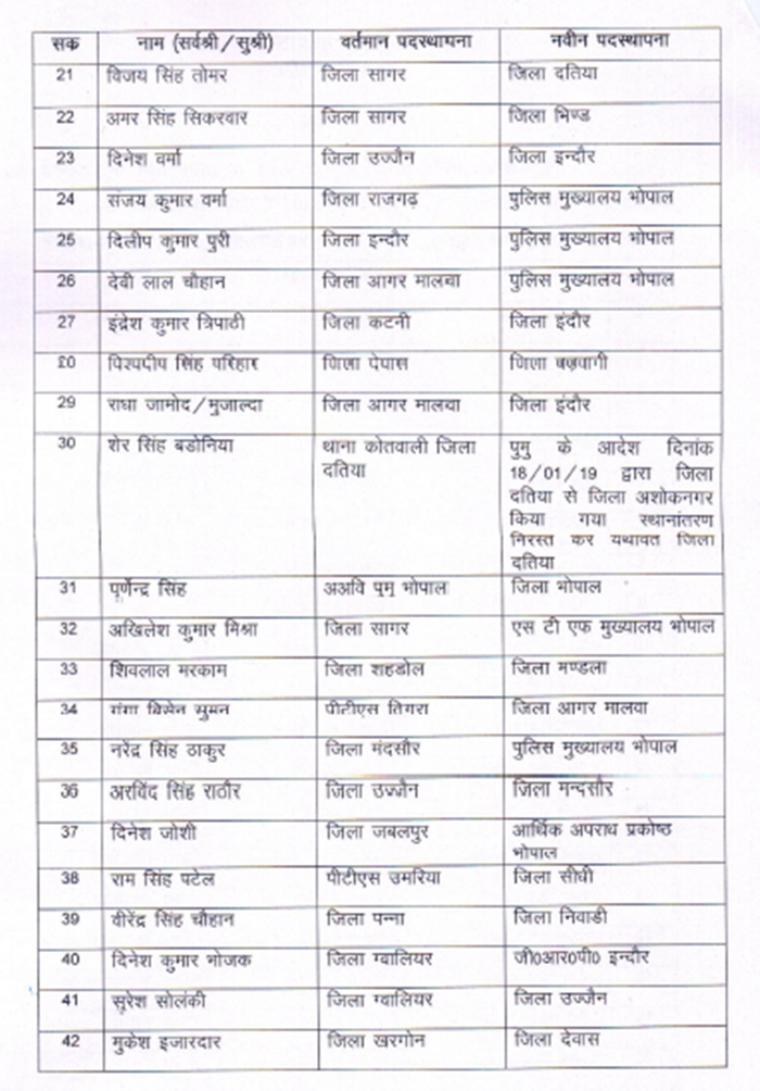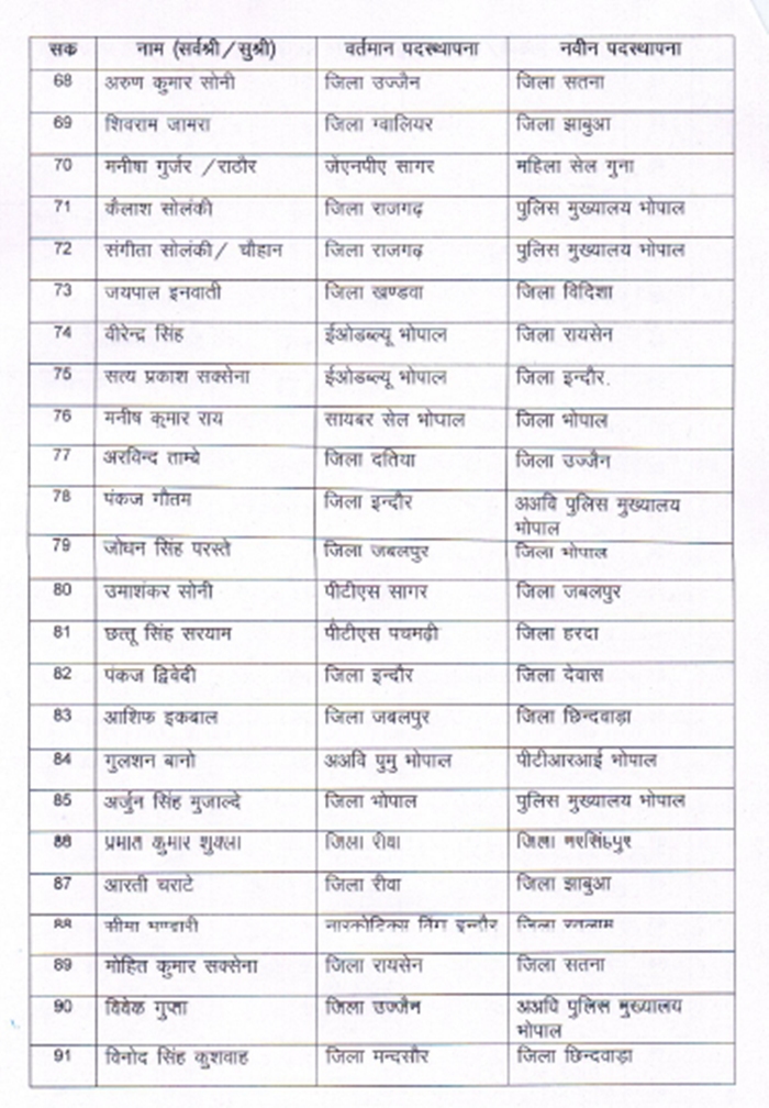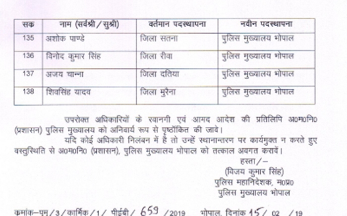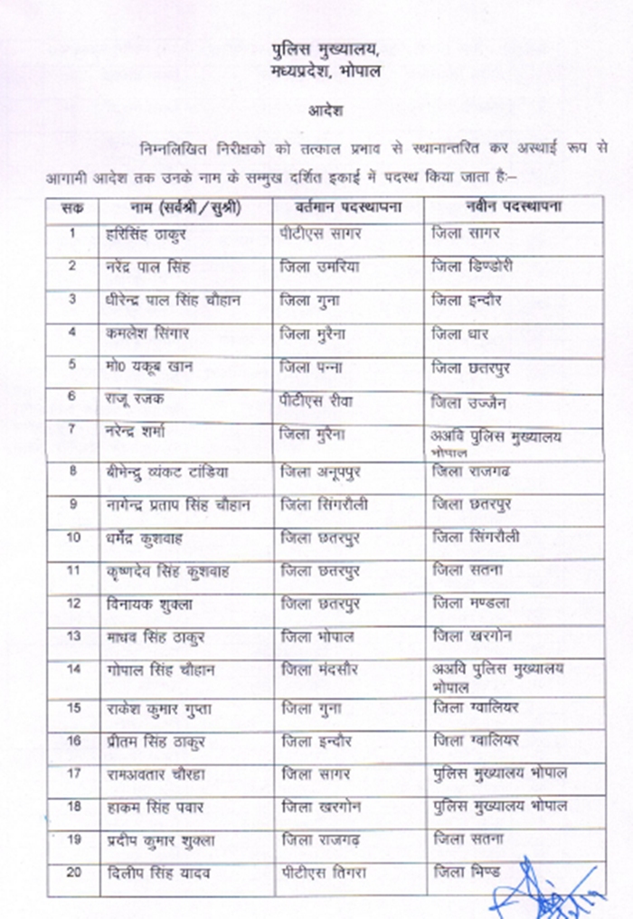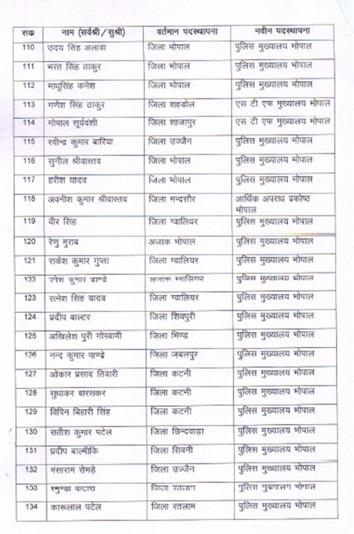 भोपाल। राज्य शासन ने आज पुलिस विभाग में बड़ी सर्जरी करते हुए बड़ी संख्या में थाना प्रभारियों के तबादले कर दिए। इससे सवा सौ से अधिक थाना प्रभारी प्रभावित हुए हैं।